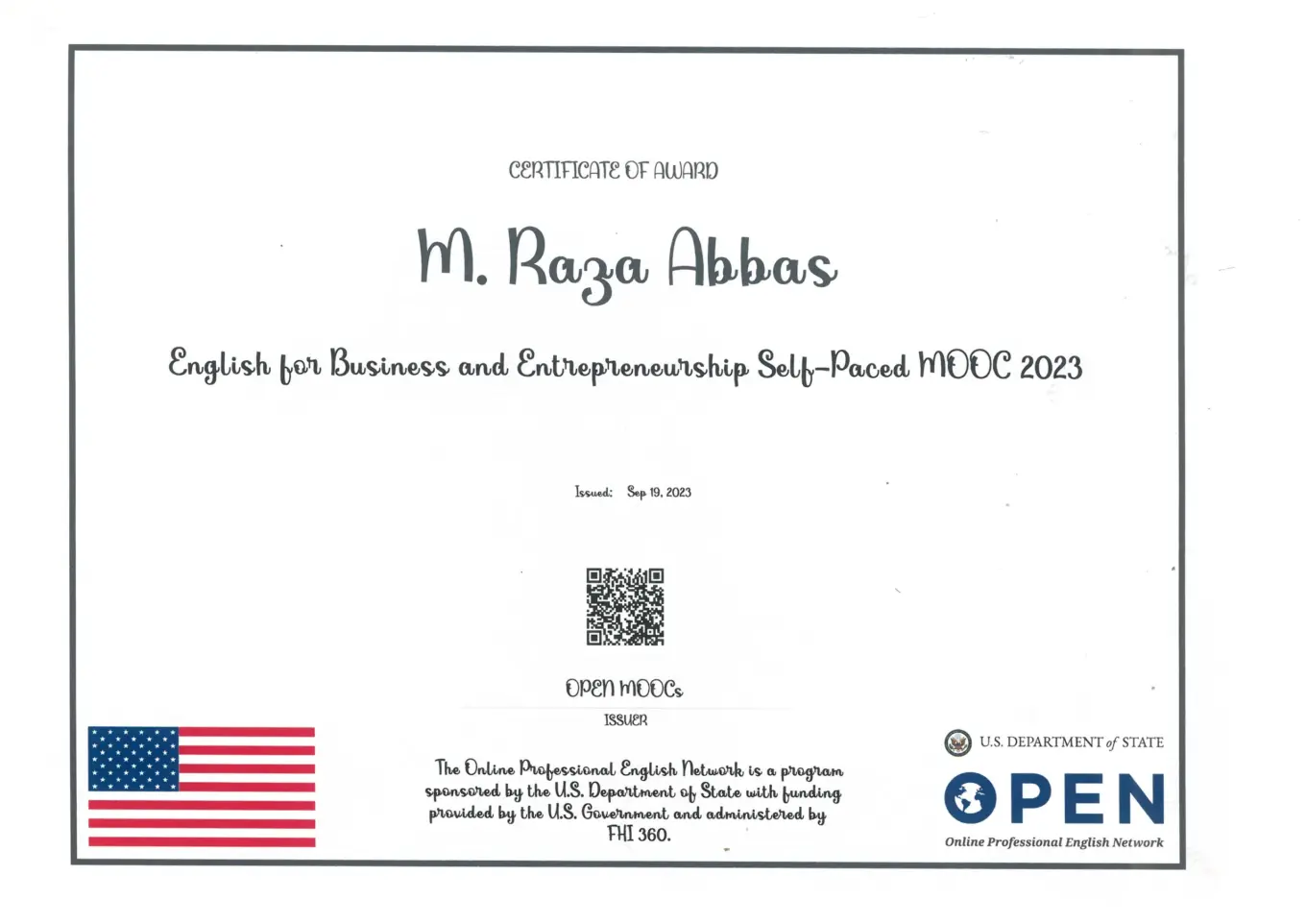 English for Business and Entrepreneurship Self-Paced MOOC 2023 Certifications