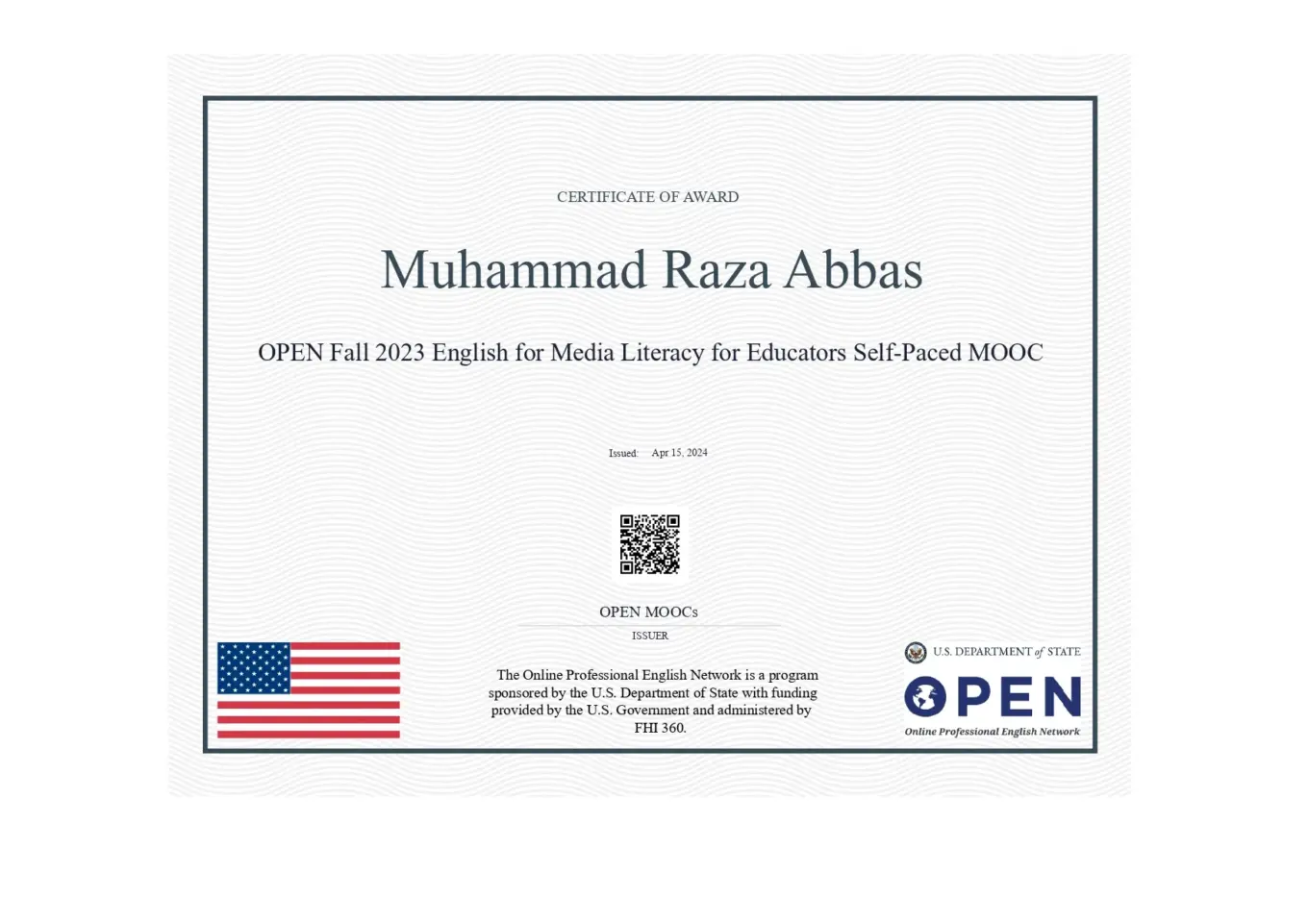 OPEN Fall 2023 English for Media Literacy for Educators Self-Paced MOOC Certifications